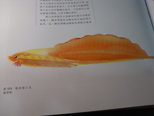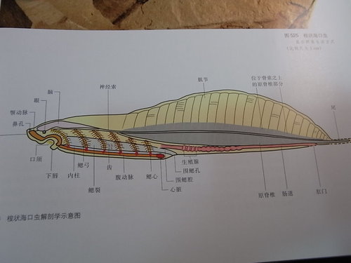 早寒武紀的海口蟲因為體內有發現一條神經索,所以被視為最早的脊索動物,也就是現今所有脊椎動物(包含我們人類) 的老祖宗,所以以前我在台博館土銀化石講座報告時,才會介紹漂亮的"林志玲"的爺爺的爺爺的爺爺.....的老祖宗居然是一條醜不拉機3cm左右的小魚
