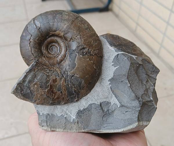 日本北海島菊石中高得利菊石算是大宗,所以特地選了顆比一般大很多的來收藏,這顆菊石有9cm,含母岩托在手裡或擺飾起來都很有氣勢、很漂亮!