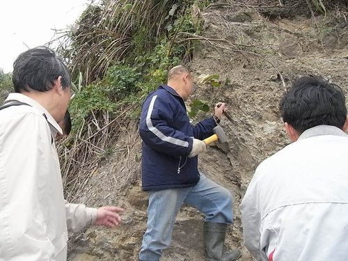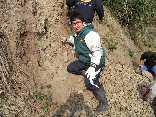這裡的地層長這樣子,斜斜的,很好的野外地科教材