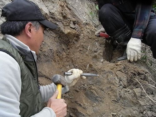 化石狂拿支螺絲起子在下面落石堆中尋寶就好