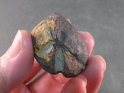 關於這個產地的海膽為何有此特色,個人推論: 因為已經沒有外殼,是鑄模化石,所以會不會是火山作用,熱熔液在地下亂竄,殼熔蝕所以焦黑。有些母岩亦有發現黃色硫磺粉末,證明有火山作用....