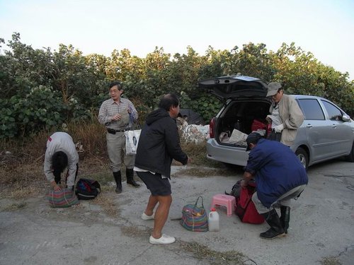 開始摸喇囉~但水裡的牡蠣殼實在有夠銳利,戴手套還是會割破手套然後割到手指,我的雙手手指頭都傷痕累累.....