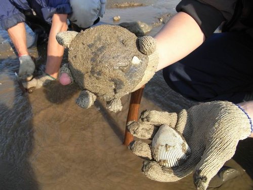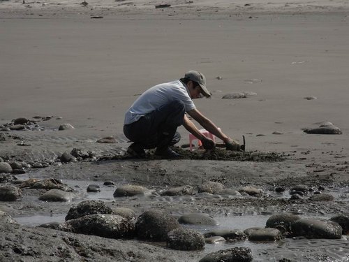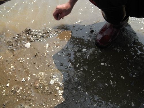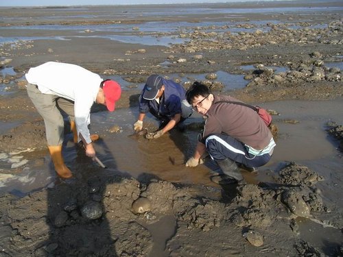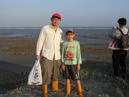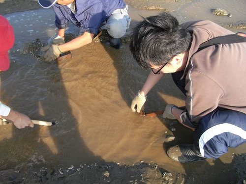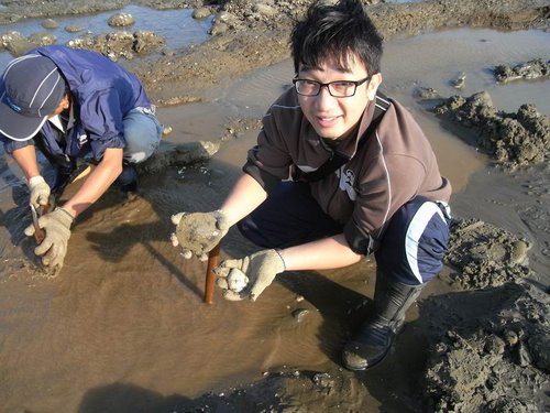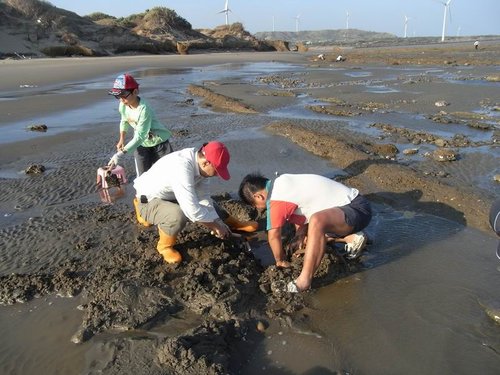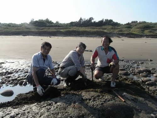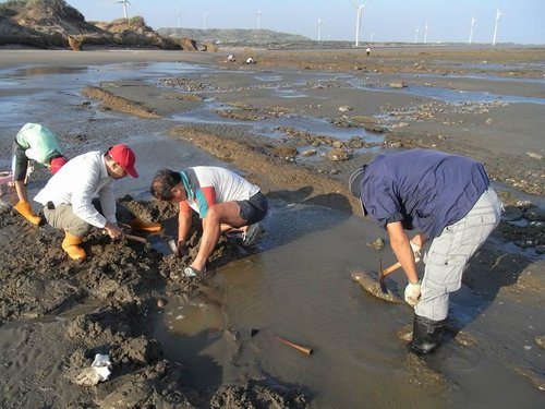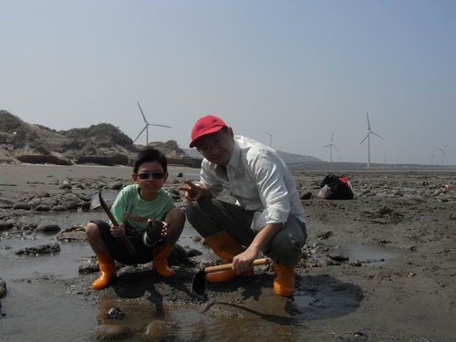 摸到五孔啦~蹲在水裡摸,全身腰酸背痛,但可以挖化石,所有的傷痛都值得啦!
