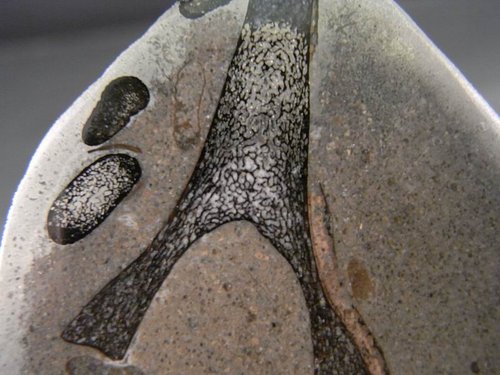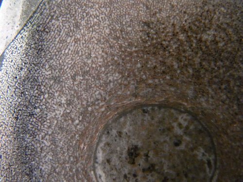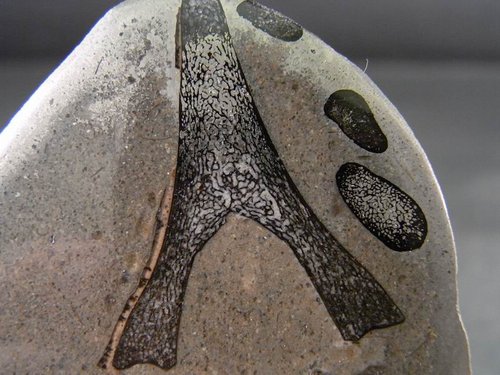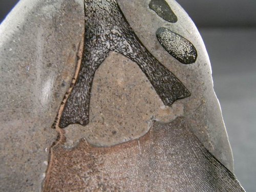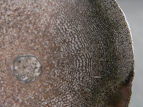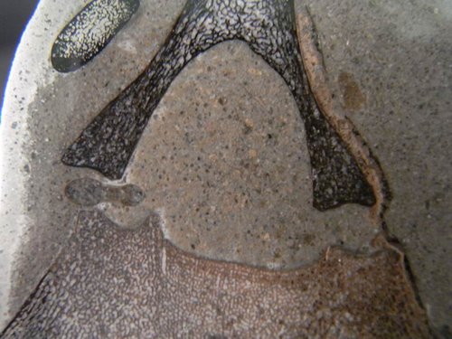 脊椎骨上面的三角突骨,骨髓的構造則和脊椎骨不一樣,比較凌亂、不規則,可能是承受水裡壓力大小的不同致使構造不同。另外,顏色也不同很明顯偏黑色。