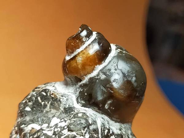 我用手機拍照時,手機鏡頭對到焦後居然顯示“食物” 以為我在拍食物,被稱為皮蛋不是浪得虛名啊! 母岩下面有一顆喇阿,故意不清掉外殼,要和上面的皮蛋當對比