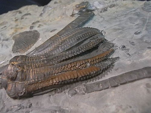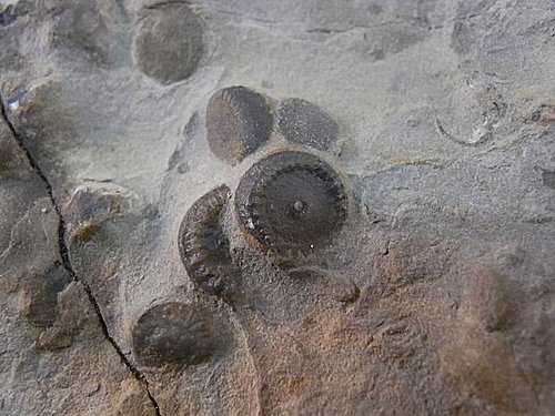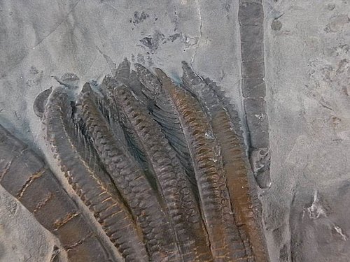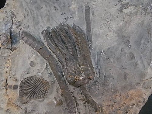 母岩上還有海百合莖的切面片段
