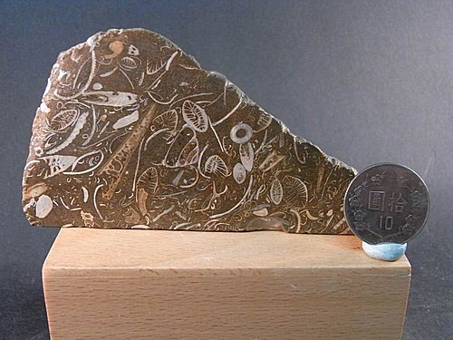 這些大石頭常被車成茶盤或桌面來販售,也算是台灣的化石工藝。