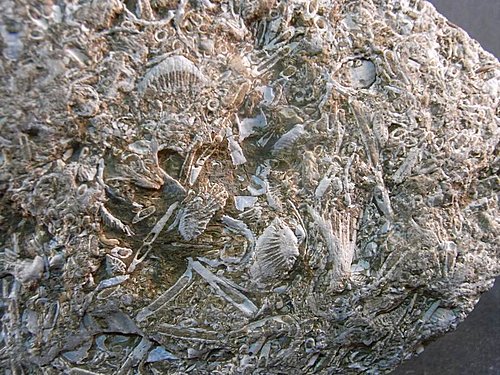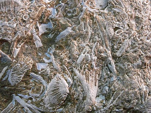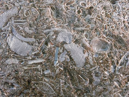 嘉義地區河邊的大石頭裡常含有豐富的生物化石群聚,甚至可以用亂七八糟來形容。