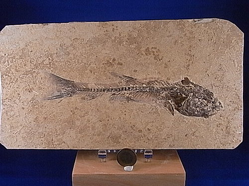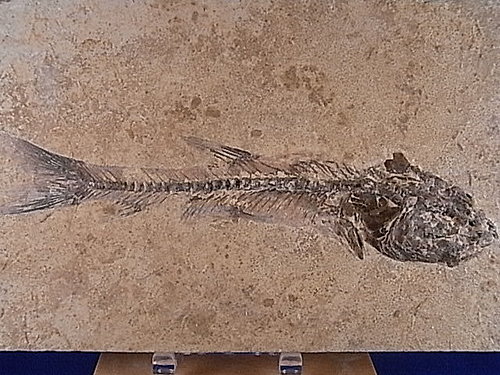 巴西山塔那的結核魚很有名,網路上也常有人在賣,有很大隻60、70公分的大魚(叫什麼我忘了),還有裂鱗魚,但網路上好像較少有人賣達斯帝魚,有也只是小小隻的,像我們台灣的小魚干,價位便宜,適合入門。這隻達斯帝長16cm,算是這種化石中的大件,魚頭及脊椎立體結核的相當漂亮。