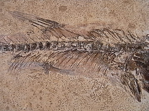 側邊秀,可以看到母岩頁岩狀的沈積及立體浮出的魚骨頭化石。