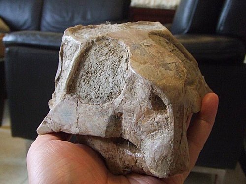 近近看太可怕了,根據特徵,大家猜看看這是什麼頭 ? 應該很容易猜出來~劉sir一下就猜出來了-鸚鵡嘴龍