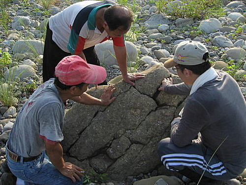 結論:現在才有深刻的體會,台灣漂亮的化石有它貴及價值的道理,花了這麼多的時間及體力及技術,我當時在大太陽底下撐著雨傘休息時,看著他們賣力敲石頭的身影時,突然覺得如果化石有要賣的話,真是連工錢都不夠啊!
