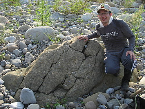 3.辛苦還在後面,回程的時候還要把這些含厚實母岩的化石,想辦法用揹的、抱的、抬的回去,所以回程的時候,身上的重量比去程更加重。感謝嘉豐幫我搬一些化石,不然我可能無法走回車上