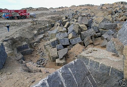 跟左側的人對照起來,可以看到地層還挖蠻深的,然後用機器切割一塊一塊的,有點像早期花蓮採大理石的盛況。