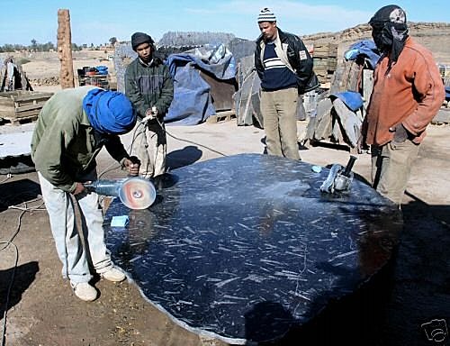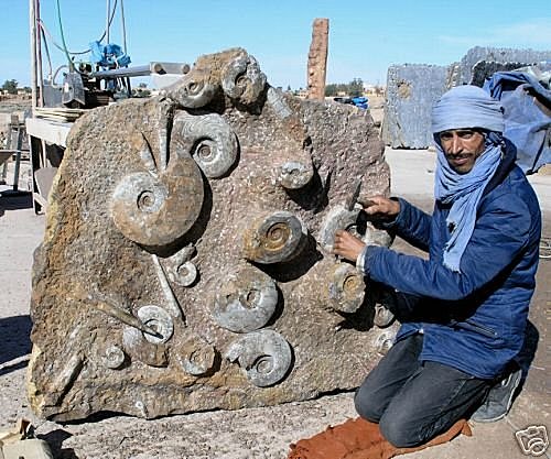 看摩洛哥的人民,一根釘子、一隻小榔頭,敲敲打打就是這樣清修化石,圖片的化石應該還會經過拋光的處理,否則近看,一定很粗糙,一定都有鑿痕。
