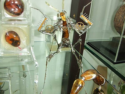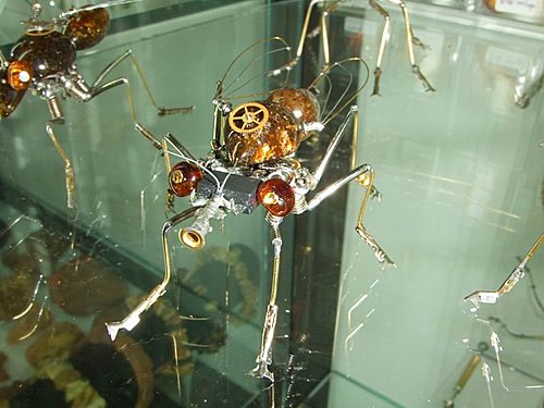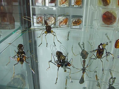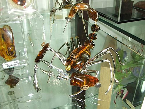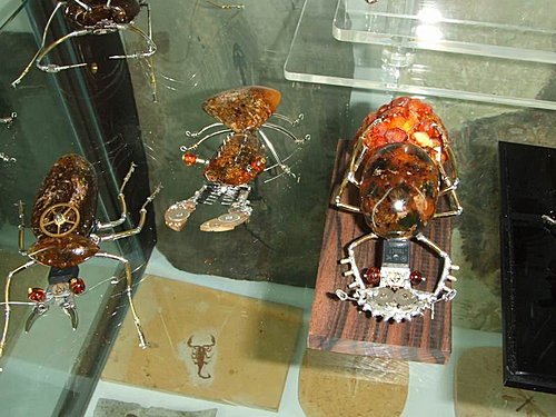 喔~這些都是這次化石狂最主要拜訪的目的 : 琥珀與舊錶零件、電子零件的創作,栩栩如生的昆蟲,化石狂真是迷死了~