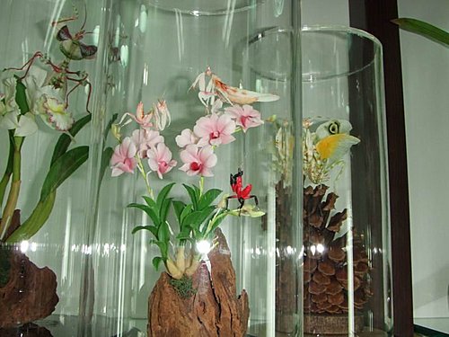 喔喔~這些也是寶寶創作的重點之一,材料我不是很專業,但總之也是要花費非常的細工夫做出來的,除了昆蟲 (最主要是螳螂 ) ,背景的花花草草也是非常重要,這樣才能生動活潑,這也是寶寶的創作理念。