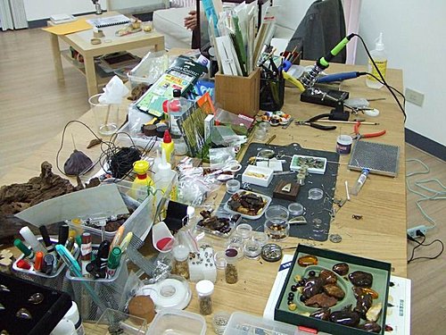 這是寶寶的工作台之一,最主要是琥珀機械昆蟲的創作。