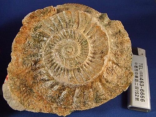 學名:Orthosphinctes Ardescia desmoides 正旋菊石 (Ortho-是正~,-sphinctes是~旋菊石)