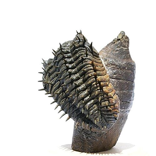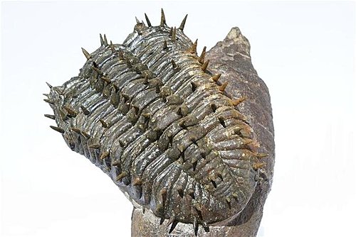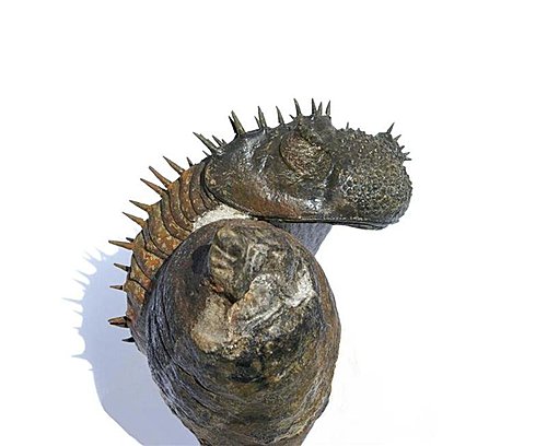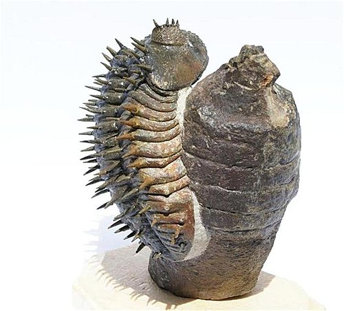 這隻阿馬特斯多刺鏡眼三葉蟲還蠻常見的,但像這樣刺這麼完整倒是很少,其實這反而要小心,因為有可能是假的,這隻市場的行情利潤高,值的造假(但這隻看起來不像假的),另外即使真的,也有可能刺是接上去的。所以除非親眼鑑定非常有把握才把錢砸下去,否則欣賞欣賞就好。