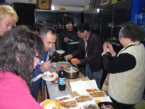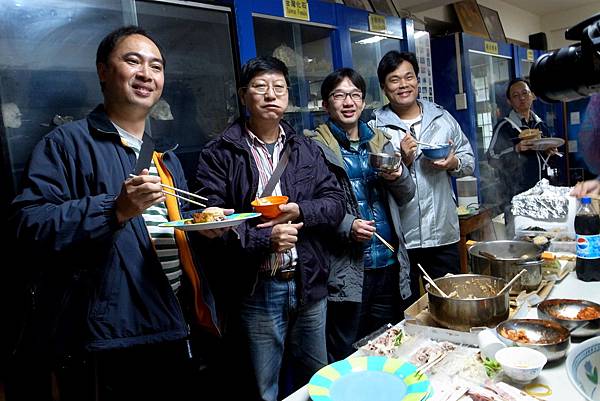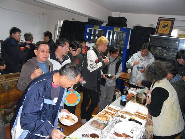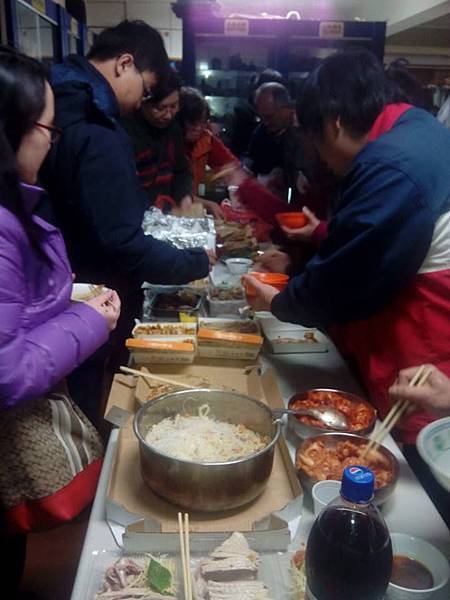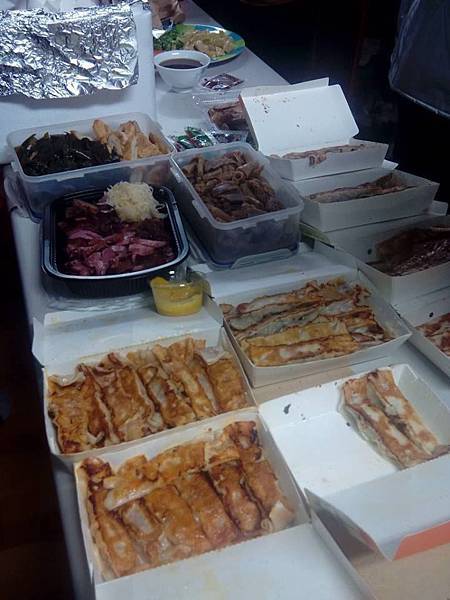 開動囉~今年菜色依舊豐富,有宜蘭召餅、鴨賞、匹薩、鍋貼、滷味、鵝肉、泡菜、炒米粉、鵝肉、一鍋烏骨雞湯.....大家飽到吃不完,看來黃博士又要吃菜尾好幾天了