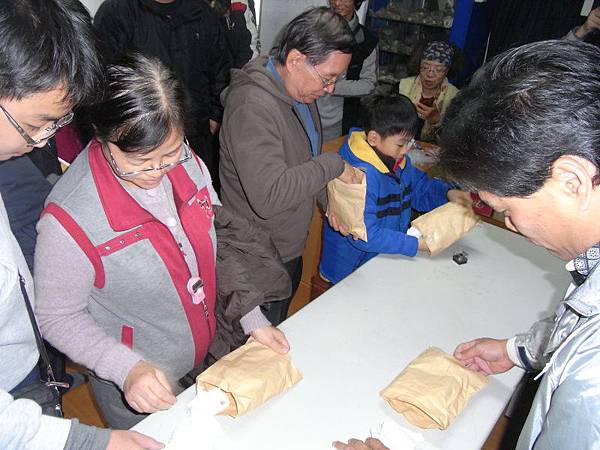 開福袋囉,小朋友甲碗內看碗外,自己還沒開就先看別人得到什麼東西.....