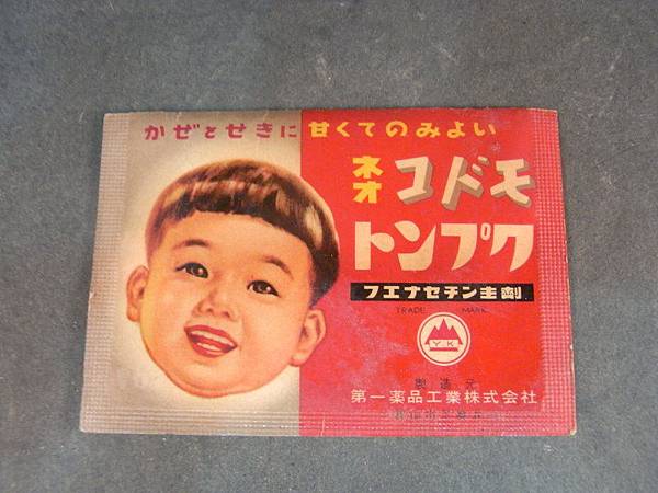 古早的成藥包裝 有小朋友笑臉 還沒吃就好一半:O
