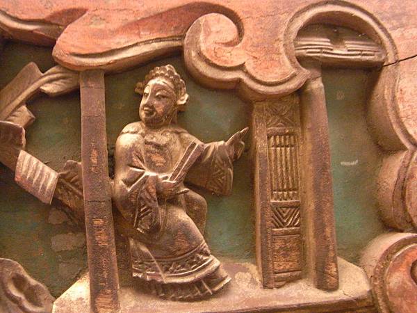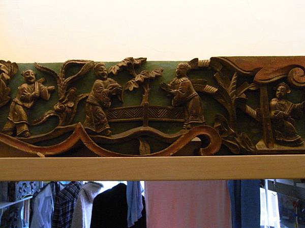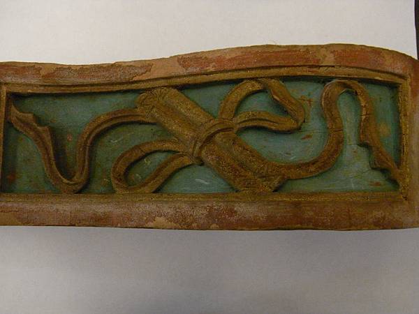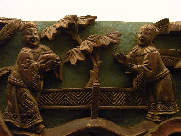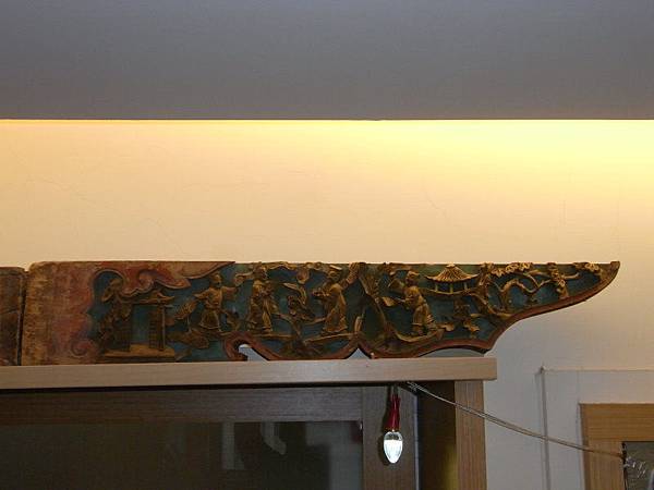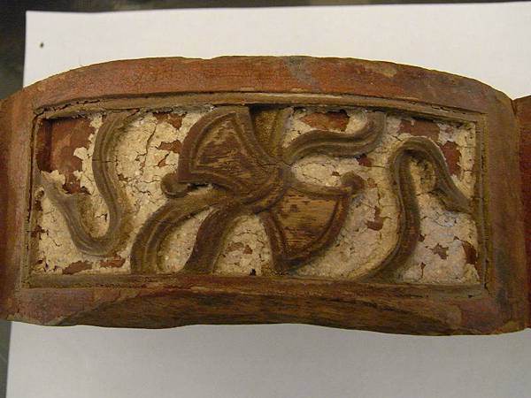 這對插角很特別,三面刻、長度長很多,可以容納戲文的彫刻、另一面則是蓮花卷草紋、下刻則是畫、棋盤(琴棋書畫)、如意、綬帶等,應以教化為用的文人古宅的插角。