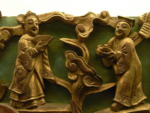 一般插角為三角形,花卉卷草、龍鳳鰲魚祥獸為主題,通常是廟宇的插角。