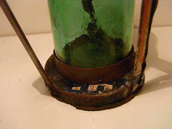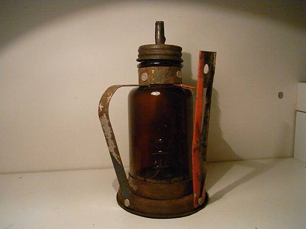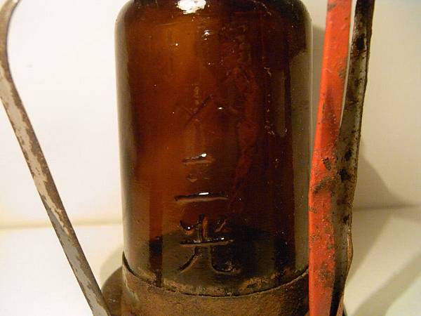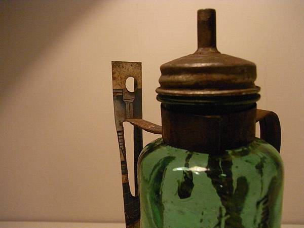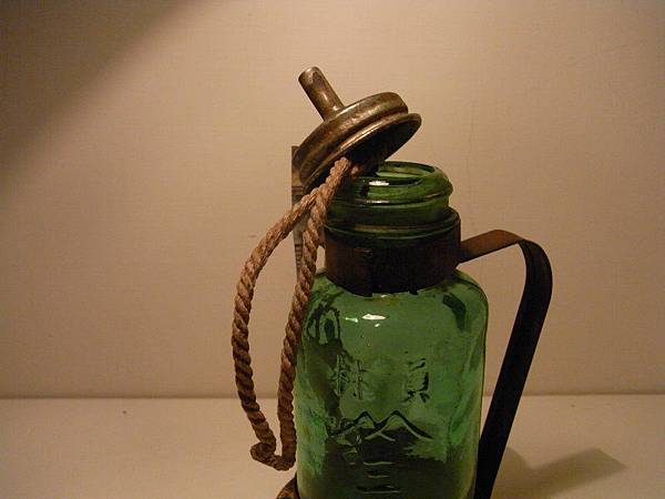另外,瓶身除了做把手,還另外作了可以掛在牆壁、柱子的掛架,成為可手拿、可置桌、亦可壁掛的三用途油燈,早期庶民愛物惜物、一物多用的節儉美德顯露無疑!