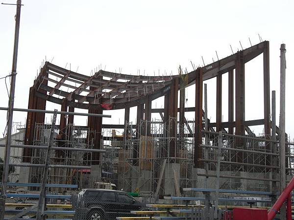 擱置好幾年,經費有著落,終於開始動工建新廟。新廟鋼骨結構,日本象集團設計(羅東運動公園與冬山河的設計公司)