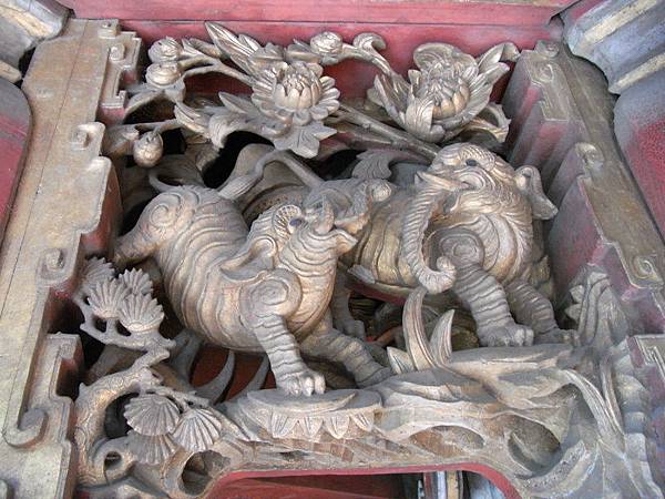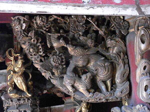 土地公福德祠的木構件,黑底描金,蠻特別的