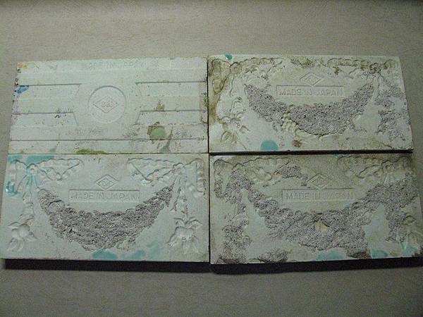 我買的日本花磚大都是用過的、從古厝拆卸下來的,所以背面的灰泥需要去除掉。