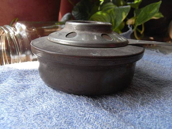 老實說這東西到底是幹麻的我不知道! 有把手可以持拿,但火爐不大,有可能是燒沉香、線香等的香爐。