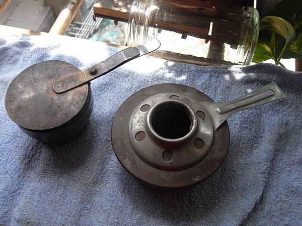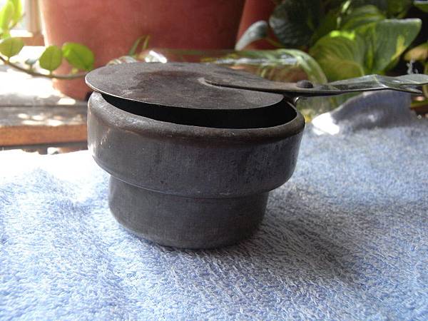 第二只則是有平蓋可以完全蓋住,對於完全滅掉裡面的火而言非常有用,可使其完全隔絕空氣,看起來像是放酒精膏的樣子,但作用是什麼也是不知道。