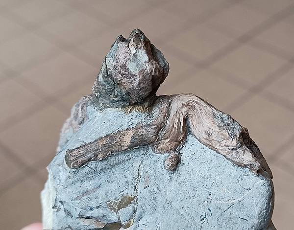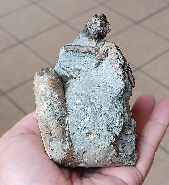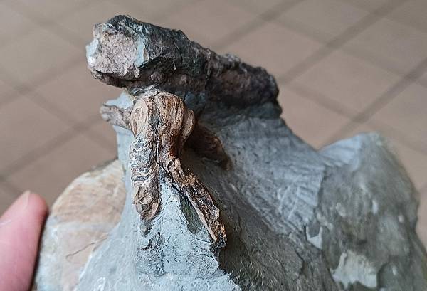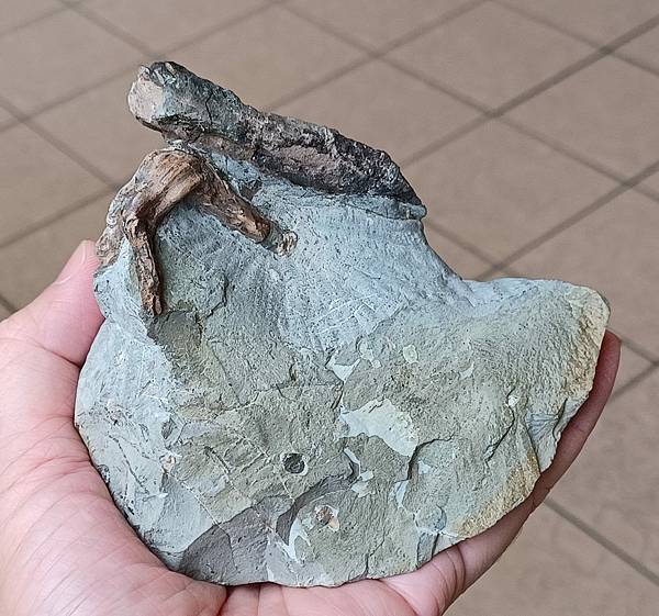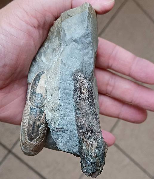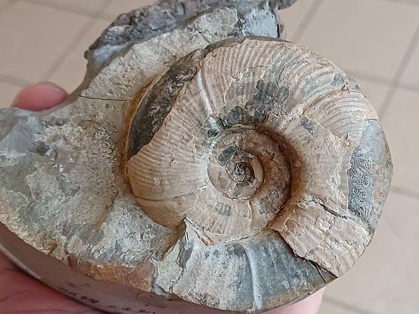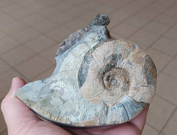這個新普若斯菊石算是蠻平常的,選這個的重點是母岩上的木化石,且木化石還不是片狀或樹幹狀,而且扭曲生長的奇木化石,這算是我第一次看到這種型態的木化石。 比起菊石,這件我更喜歡配角木化石 。另外,新普若斯菊石已經改名為橫山菊石(Yokoyamaoceras sp.) 。