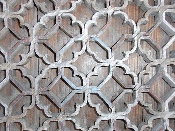這件窗只雖然洗盡鉛華,但木條上還是有些許礦物彩的痕跡,這是我愛的! 雙只折交技法是不黏不釘,所以掉一根木條可能就會脫落掉一片範圍,所以保存要非常小心,也因此後面再釘一片木板應該是後來才釘的。