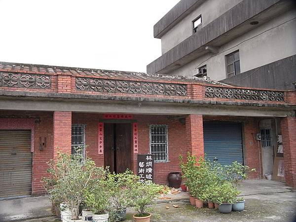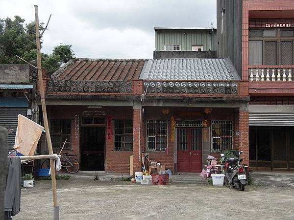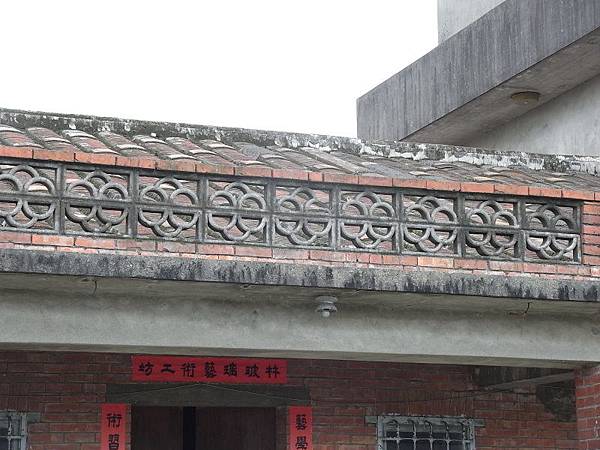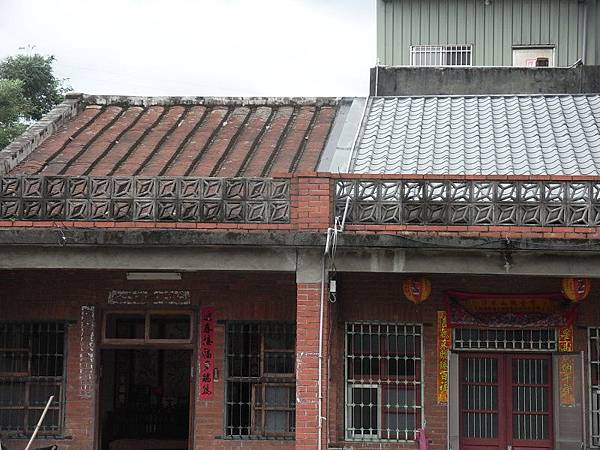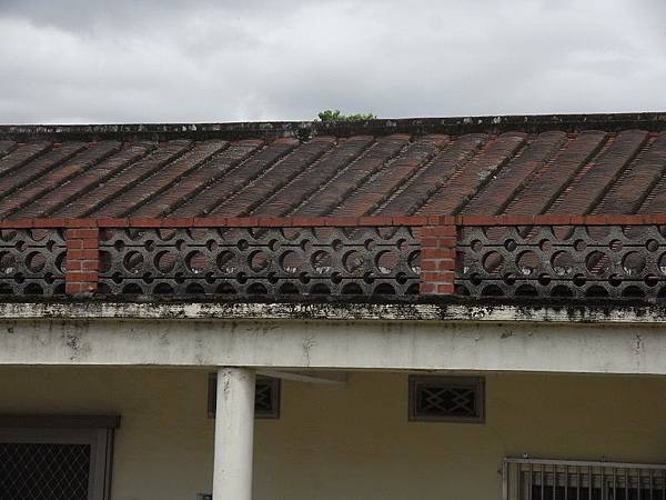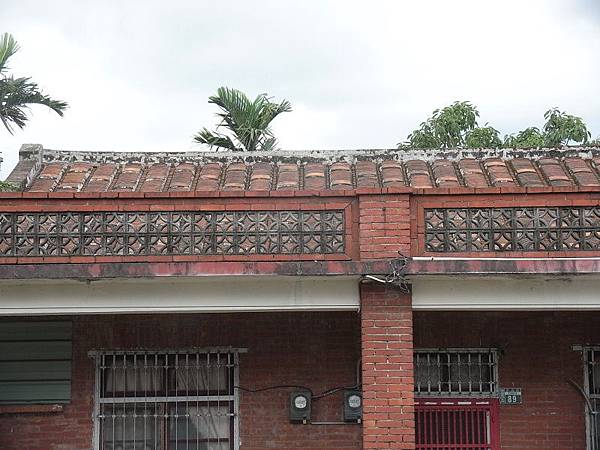 屋簷口的女兒牆是蠻特別的作法,類似許多老街上巴洛克風建築的山牆(立面),不過山牆可以堆花、雕刻、裝飾,鄉下民宅或許資金有限、或許當時年代流行水泥花磚,所以僅用水泥花磚堆砌起來。