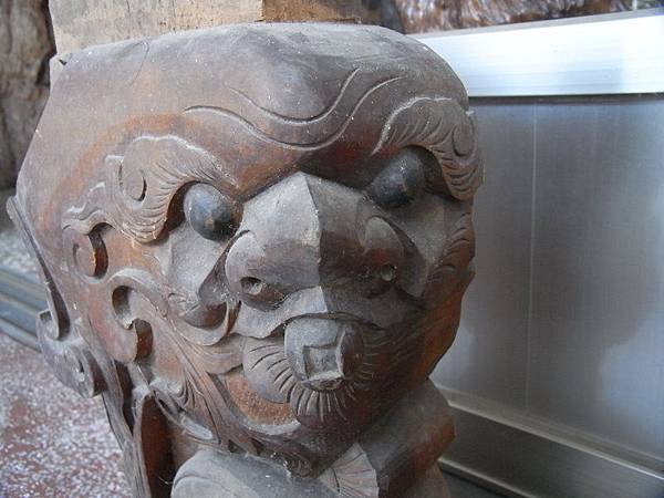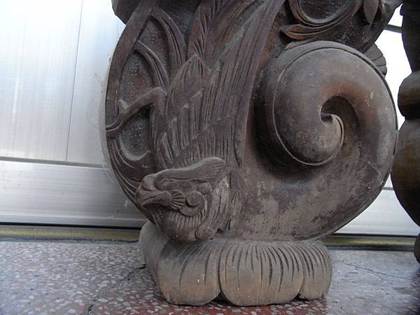 螭虎好吃,連自己的腳都吞,螭虎嘴巴露著一隻腳的模樣實在可愛,據說亦有辟邪的功能,剛好此腳可以擬化為彼腳,所以傳統上,不論是台座、几桌、柱子....等,只要有腳的,都有機會以螭虎吞腳來表現。