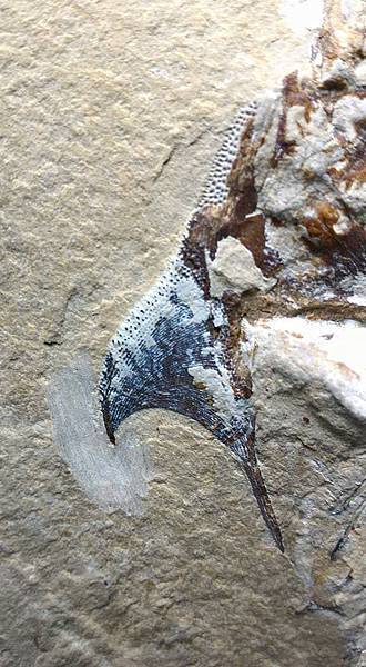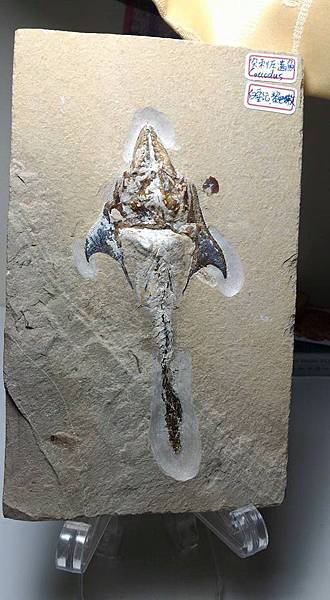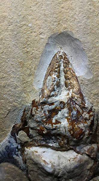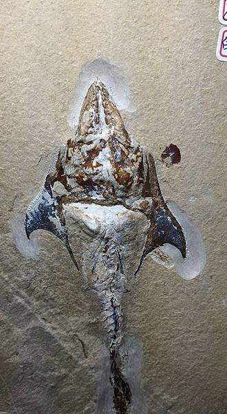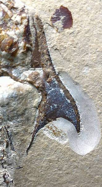 這件標本非常漂亮,兩旁鐮刀狀的棘完整且清的很漂亮,連細紋都有。口部的豆形齒雖沒有兩列四排,但也有兩排清楚呈現。