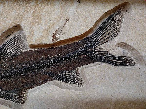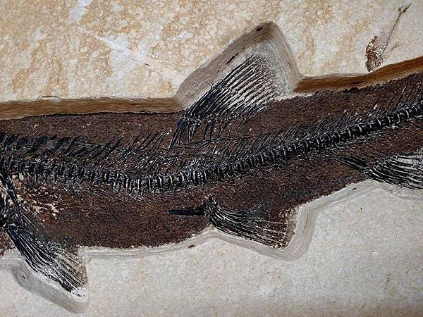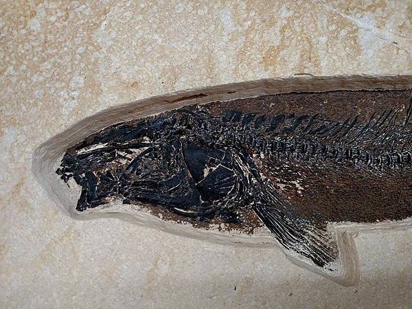 學名 Notogoneus osculus 小口鼠鱚魚,懷俄明州著名18吋厚的始新世(37-54ma.)綠河組沉積地層。