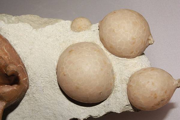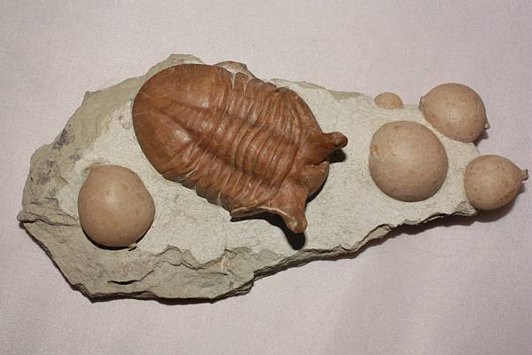 其實我是衝著海林檎而買得,比起俄羅斯三葉蟲,海林檎數量居然稀少很多! 我玩俄羅斯三葉蟲也有好幾年了,五年前曾買過一塊一隻櫛蟲加一顆海林檎,到現在才又遇到這塊,而且居然有6顆,當然趕快把它買下來,好在外國人好像對海林檎好像沒什麼興趣,我才能順利搶下。