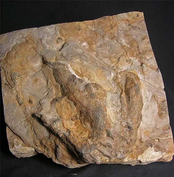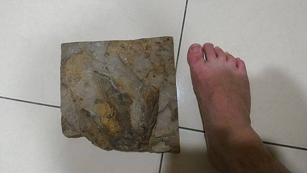 我看只有我會買這種化石 小型肉食性獸腳類恐龍足印化石 看著我的腳,想像一下這隻恐龍的大小 英國侏儸紀時期的沙攤上恐龍走過留下來的