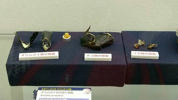 現在頭足類的顎器及菊石顎器化石(箭頭處)
