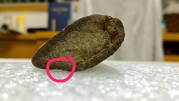 依照肋骨體寬度、斷裂後剩餘長度、肋骨角的特殊角度、肋溝所在面以及內部緻密骨及海綿骨比例來推測,像是象的左側第3肋骨附近的肋骨。 可以排除鯨魚類的肋骨,因為鯨魚肋骨幾乎全由海綿骨組成,看不到緻密骨。