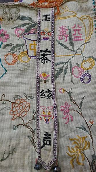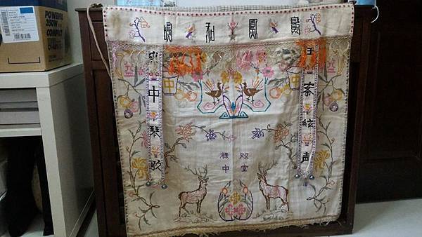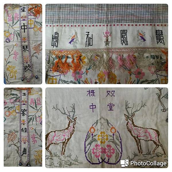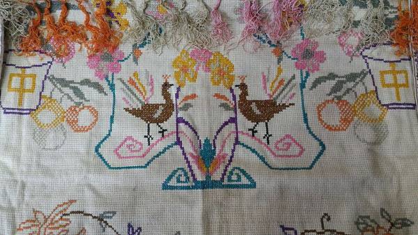 昔日嫁娶的桌裙 鸞鳳合鳴 双祿堂中 座中琴歌 玉案絃声 充滿喜氣寓意祝福新人 同時也欣賞十字繡之美