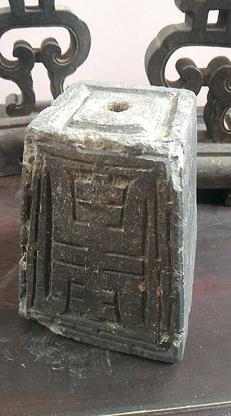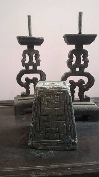 桃竹苗地區客家庄拜伯公用的黑胎燭臺 方形台座狀,穩重大方,上面陰刻壽字 可惜只有一個、不成對 但有緣,物自會找主人湊成對 這樣的故事不是沒有的,所以放寬心、不必玩物喪志