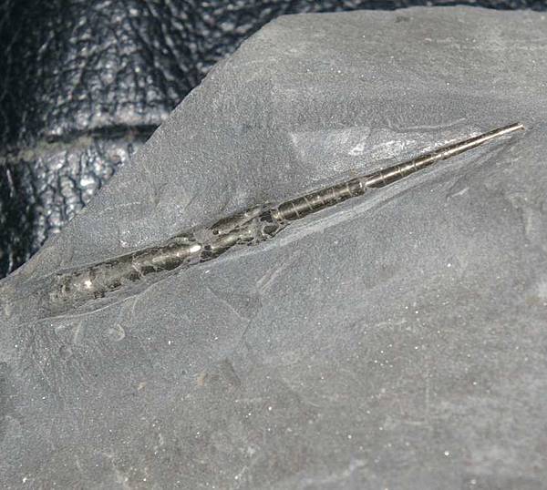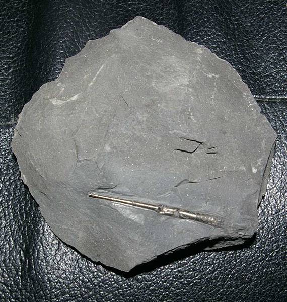 這個看起來有像桿石,但桿石構造比較偏向菊石,是菊石的老祖宗,這個則是角石。構造上差別是它的殼長而直、住室長、體管細且是中間穿過。我們知道體管中間穿過是屬於鸚鵡螺類,而角石也就是所謂的鸚鵡螺。