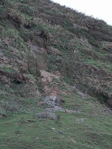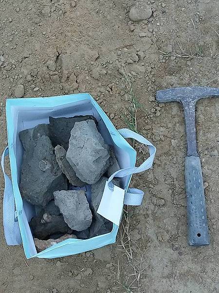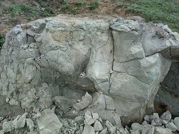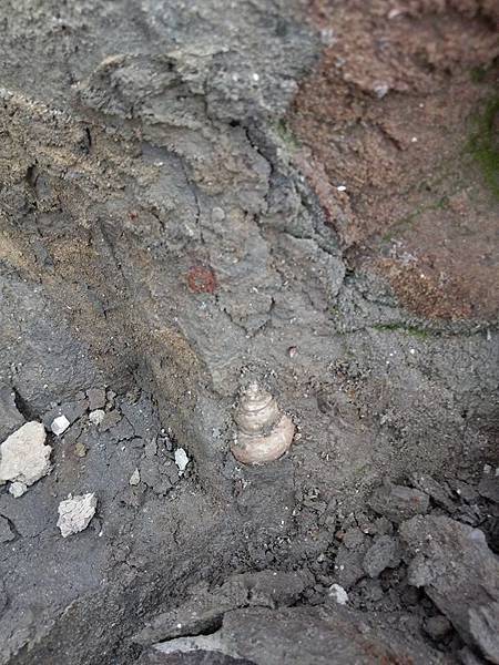 圖為滾落的大石塊,較有機會採集完整的田螺化石。