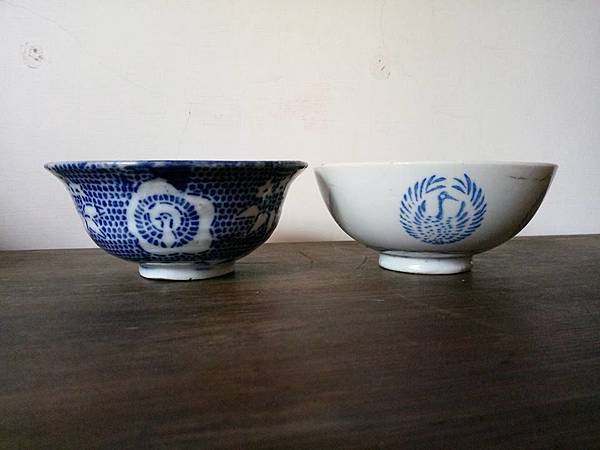 這2款鶴紋碗本懷疑是否台灣日據北投貴子坑的大屯燒 經前輩指導,胎土較細較白,應為日本進口 右邊鶴紋碗是苗栗三灣鄉民家蒐出,所以應該是台灣日據時代的舶來品